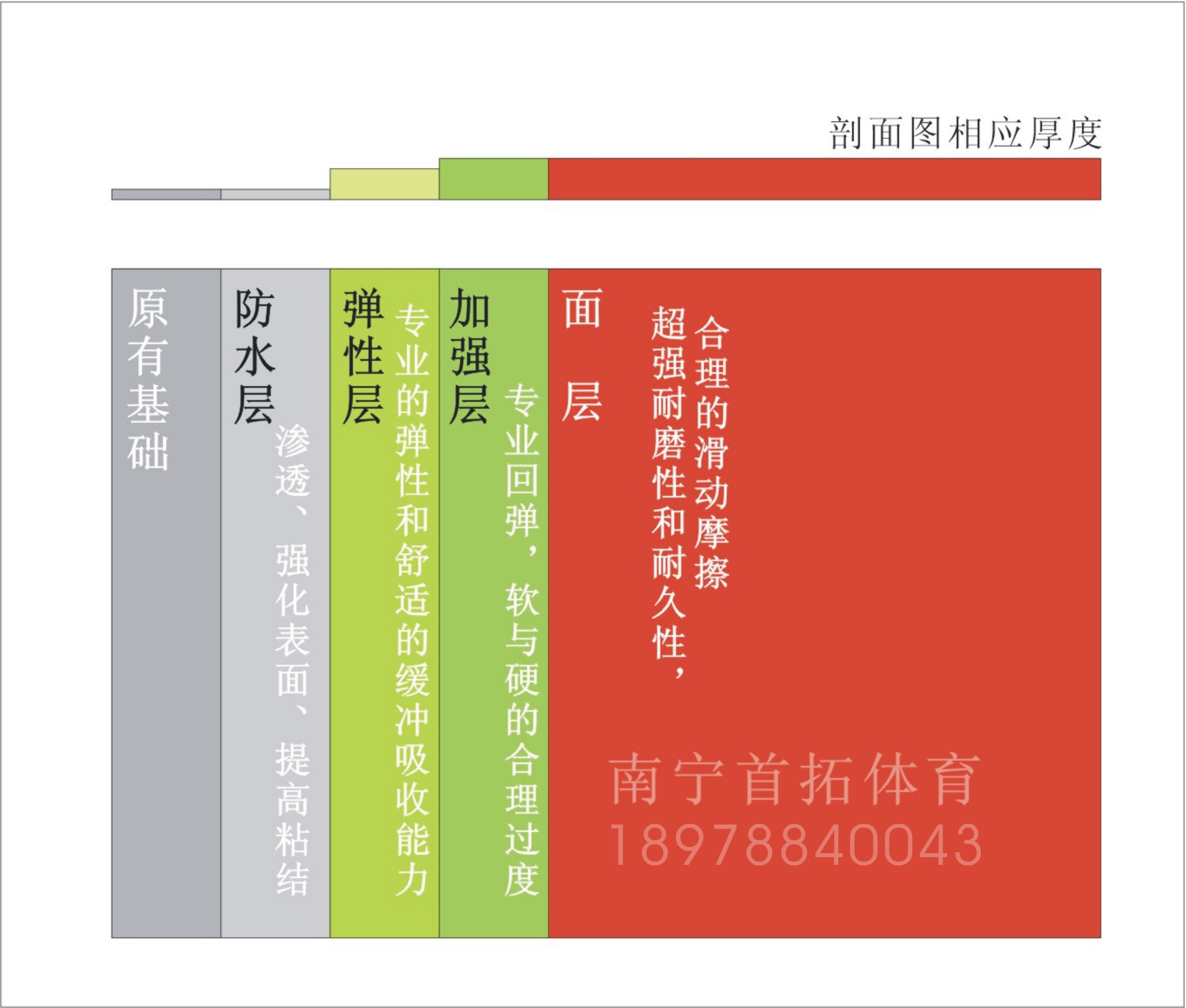 广西南宁首拓体育专业承建:广西硅PU塑胶篮球场施工、广西塑胶跑道施工、南宁塑胶篮球场、幼儿园塑胶地面施工、塑胶羽毛球场施工、塑胶跑道建设、塑胶球场铺装、人造草坪铺装、丙烯酸球场施工、pvc运动地板、实木运动地板、篮球场围网、网球场灯光及配设施。广西南宁首拓体育公司,是一家承建体育场地铺装工程,经营体育用品、健身器材专业性公司。在全国多个大中城市设有塑胶篮球场施工、塑胶跑道办事机构,拥有完善的销售、服务网络。致力于体育场地铺设及体育设施安装服务。公司以“质量为首,拓展未来”为经营理念,以技术领先为指导思想,在我们的的锐意进取、务实创新的共同奋斗下把塑胶球场、塑胶跑道做大、做好,创建一流质量。促进体育运动事业的健康发展为企业宗旨,始终坚持科学的发展观和“唯才是用”的人才观,以责任和关爱支持回报社会。