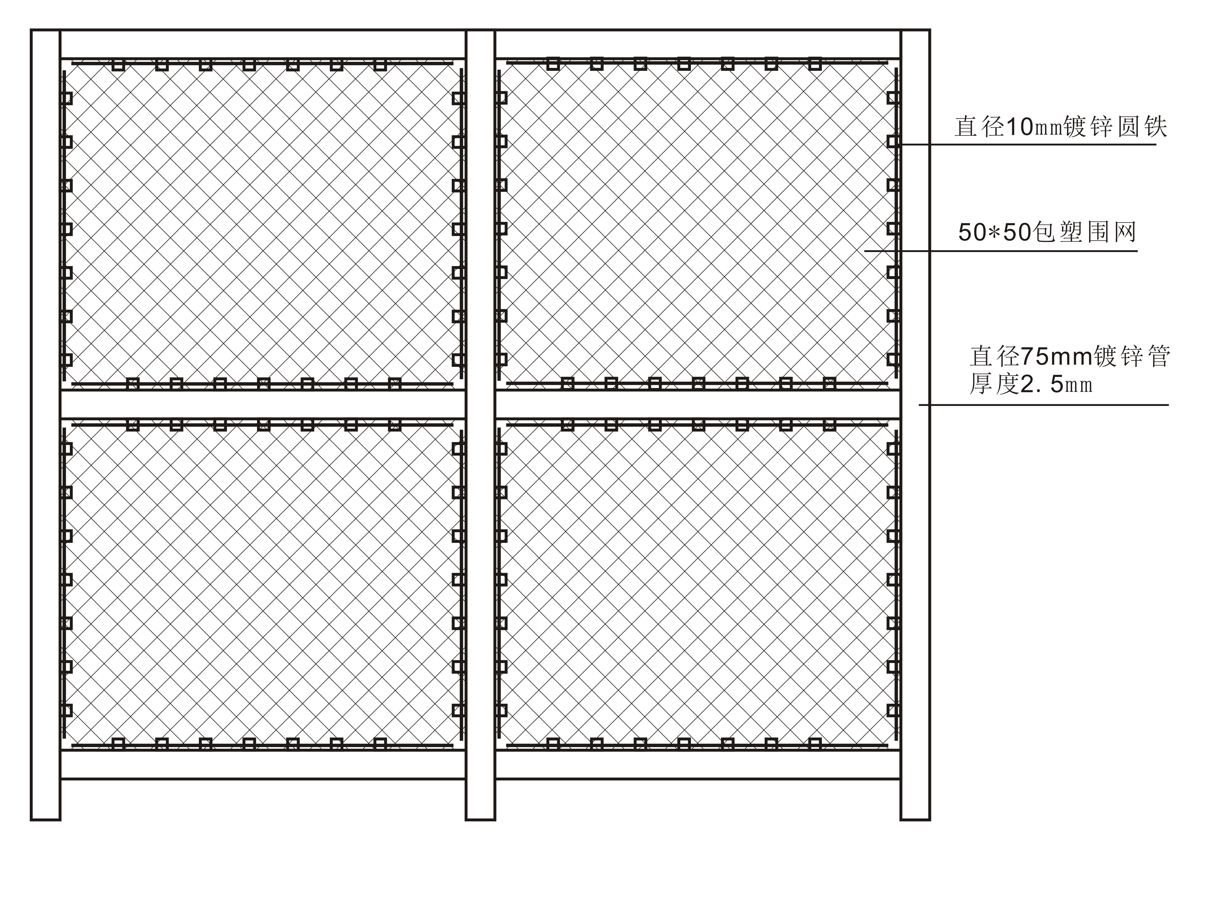 (1)、围网:品牌-upman-horse(恰好时)PE高效包塑围网,采用内径Φ2.3mm,外径Φ3.6mm,网孔45 mm×45mm,颜色0276墨绿色)。